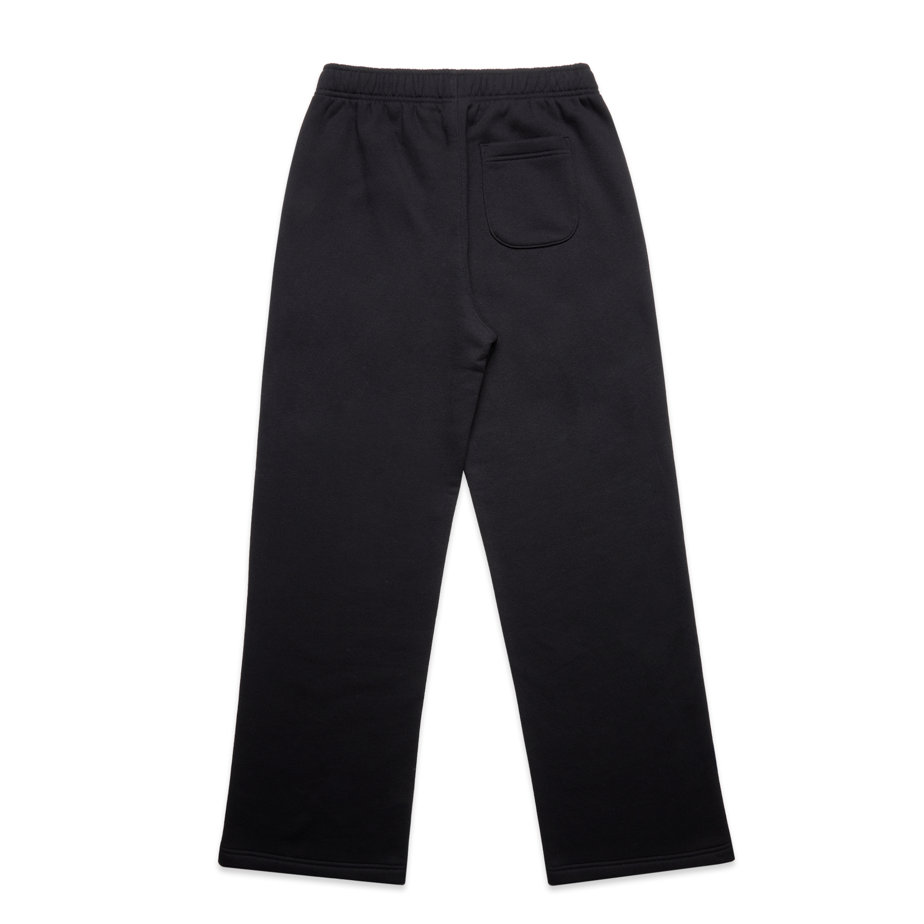 Self-fabric elasticated waistband, cuff less hems, tonal internal drawcord, 2 side pockets, single pocket at back